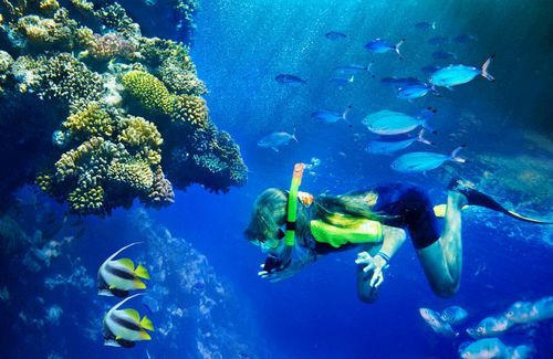 スノーケリングツアーでは見れない美しいサンゴ礁や魚の群れはもちろん、数え切れないほどの熱帯魚!ウミガメ、サメ(人は襲いません!)にもダイビングなら高確率で出会えます。ランチはハイシーズン中はマヤベイに停泊中のボートの上でお楽しみ頂きます。(雨期は海況によりランチのための停泊場所は変わります。)